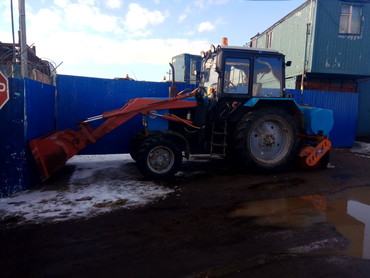 Аренда трактора МТЗ со щеткой (щетка с увлажнением) отвалом и ковшом.