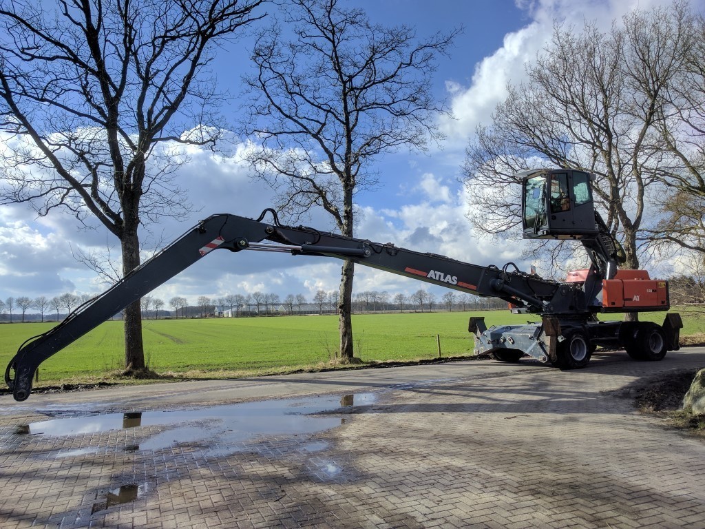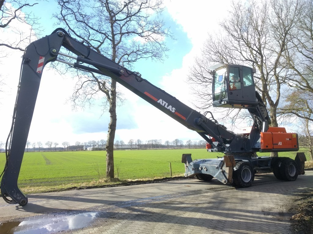 "Atlas 350 MH", 2012 г. в., двигатель Deutz TCD 2013L06, вылет стрелы 18 метров, высота разгрузки 14,7 метра, 7600 моточасов, указана стоимость DDP в г. Санкт-Петербург. В подарок новый грейфер для металлолома, 0,8 куб. м
