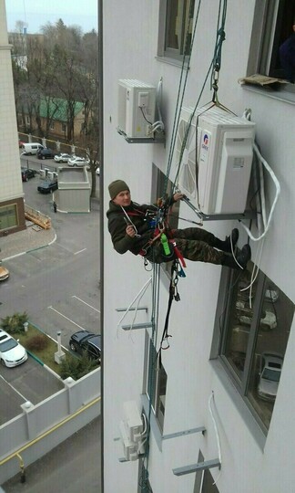 Востребованная услуга при установке кондиционера — монтаж наружного блока на высоте. В ряде случаев единственным вариантом выполнить монтаж становится привлечение к работе промышленных альпинистов, способных обеспечить подъем даже крупногабаритного внешнего блока кондиционера при помощи специального оборудования. В нынешних условиях многоэтажной жилой застройки Великого Новгорода - это востребованный способ быстро и безопасно установить наружный блок.