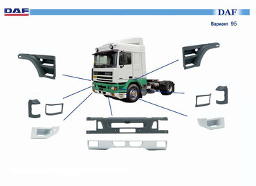 металлические части кабины и кузова, фонари и фары DAF; • Пластиковые и