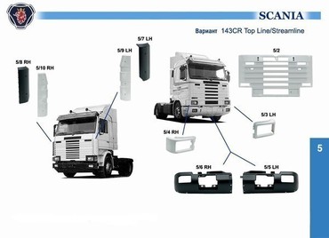 Пластиковые и металлические части кабины и кузова, фонари и фары SCANIA